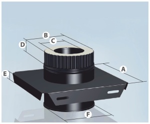 Монтажная площадка закрепляет дымоход, поддерживает его конфигурацию и переносит нагрузку монтируемых над нею элементов дымохода на несущую конструкцию (стена, перекрытие)