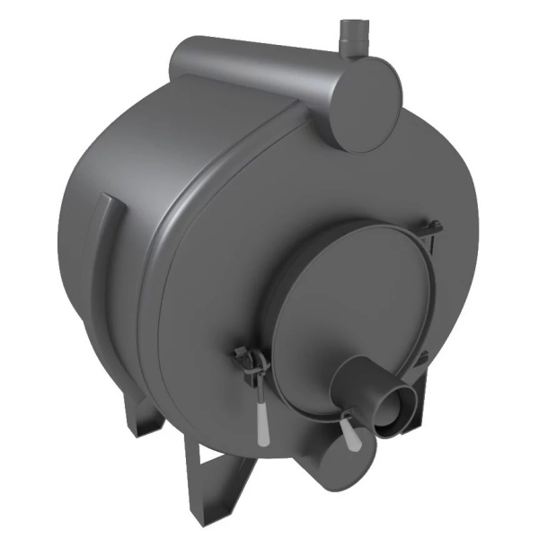Котел регулируется двумя заслонками. Одна из них регулирует подачу воздуха в топку, вторая — дымовые газы. За счет этого можно контролировать интенсивность горения. При максимально открытых заслонках идет горение дров и происходит быстрый прогрев помещения — 40-50 минут. При прикрытых заслонках происходит тление топлива, что позволяет отапливать помещение в течении 6-8 часов.